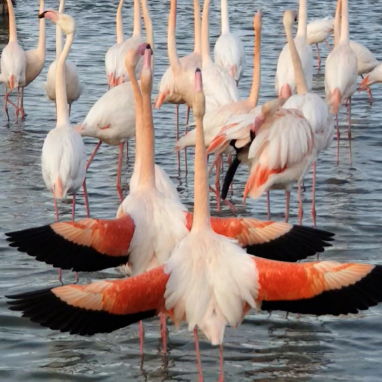 - Flamants roses et chevaux camarguais : La biodiversité autour d’Aigues-Mortes est typique de la Camargue.